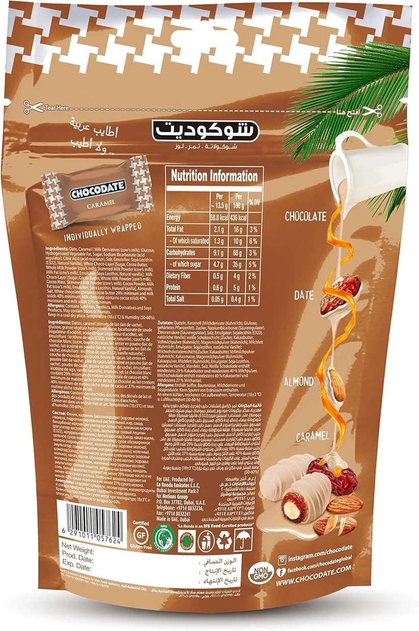 Premium Ingredients: This exquisite bite-sized delicacy is made with rich, silky caramel chocolate, velvety smooth Arabian dates and golden roasted almonds, making every snack fun and delicious. The almonds are coated with premium Arabian dates and dipped in rich, silky smooth melted chocolate that melts in your mouth and tickles your sweet tooth. Chocolate Treats: The chocolate treats are the perfect snack option for every craving and mood. A Healthy Alternative: Chocodate chocolate treats are the perfect snack for tea and other social gatherings.
