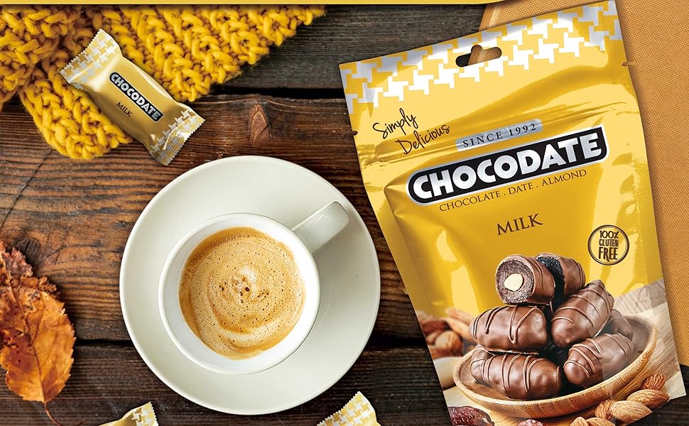 Enjoy the rich and unique taste of Chocodate Milk Chocolate with Dates and Almonds. Made with the finest ingredients, this chocolate treat is perfect for satisfying your sweet tooth. The combination of milk chocolate, dates, and almonds creates a delightful blend of flavors that is both sweet and nutty. Whether you enjoy it as a snack or give it as a gift, Chocodate Milk Chocolate is sure to impress. Every bite of Chocodate Milk Chocolate is an explosion of decadence. The creamy milk chocolate melts in your mouth, while the chewy dates and crunchy almonds add a delicious texture. With its beautiful brown color and irresistible flavor, this chocolate is a feast for the senses. Whether you enjoy it alone or with your loved ones, Chocodate Milk Chocolate is a delicious treat that is sure to please. Chocodate Milk Chocolate with Dates and Almonds is the perfect combination of sweetness and crunch. The smooth and velvety milk chocolate blends perfectly with the natural sweetness of the dates, while the almonds add a pleasant crunch. Every bite is a harmonious blend of flavors and textures that will leave you wanting more. Whether you’re a chocolate lover or simply looking for a delicious and indulgent treat, Chocodate Milk Chocolate is a must-try.