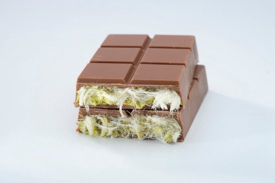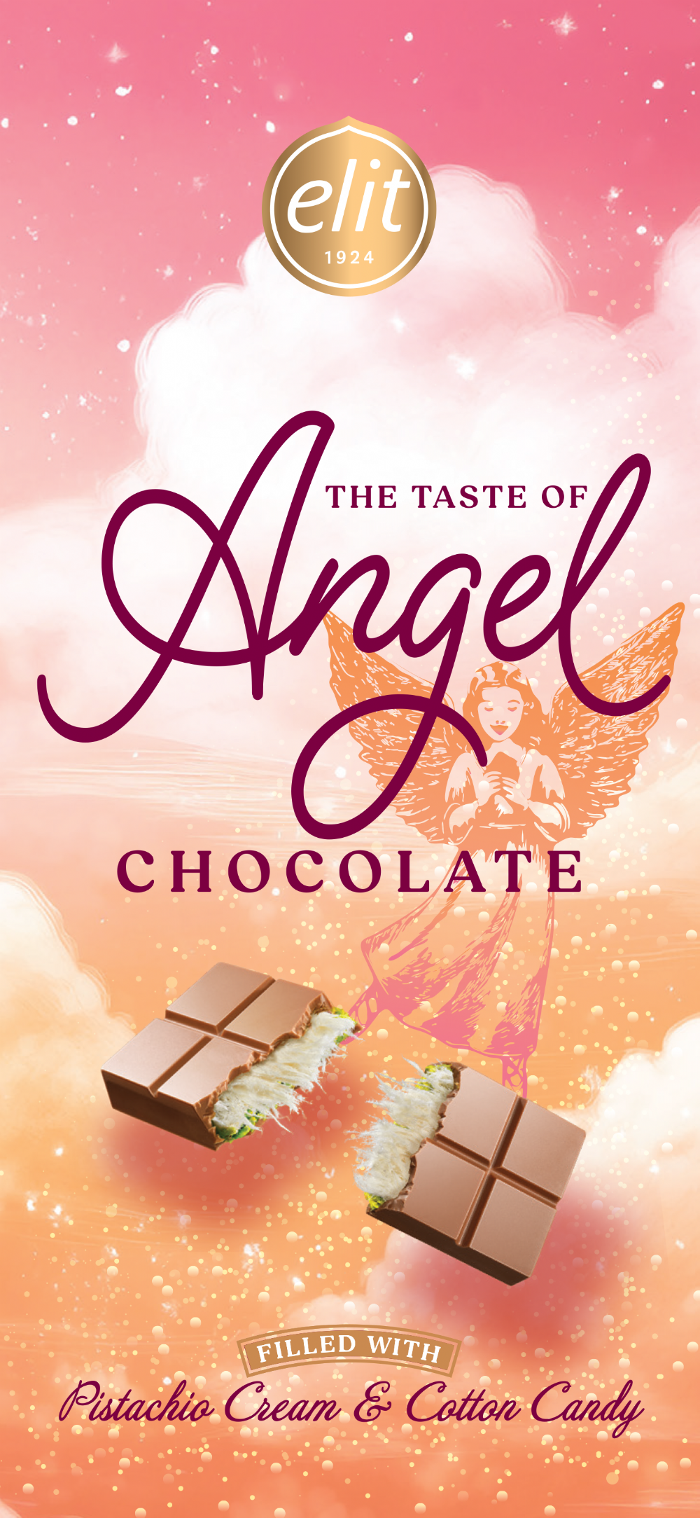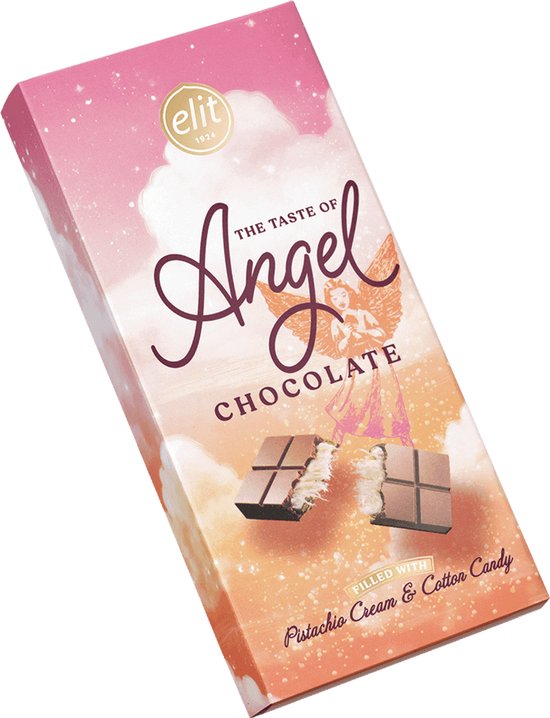 Discover Elit Dubai Angel chocolate with cotton candy texture and pistachios. Unique, airy, and luxurious taste. Order now and تجربه the difference!