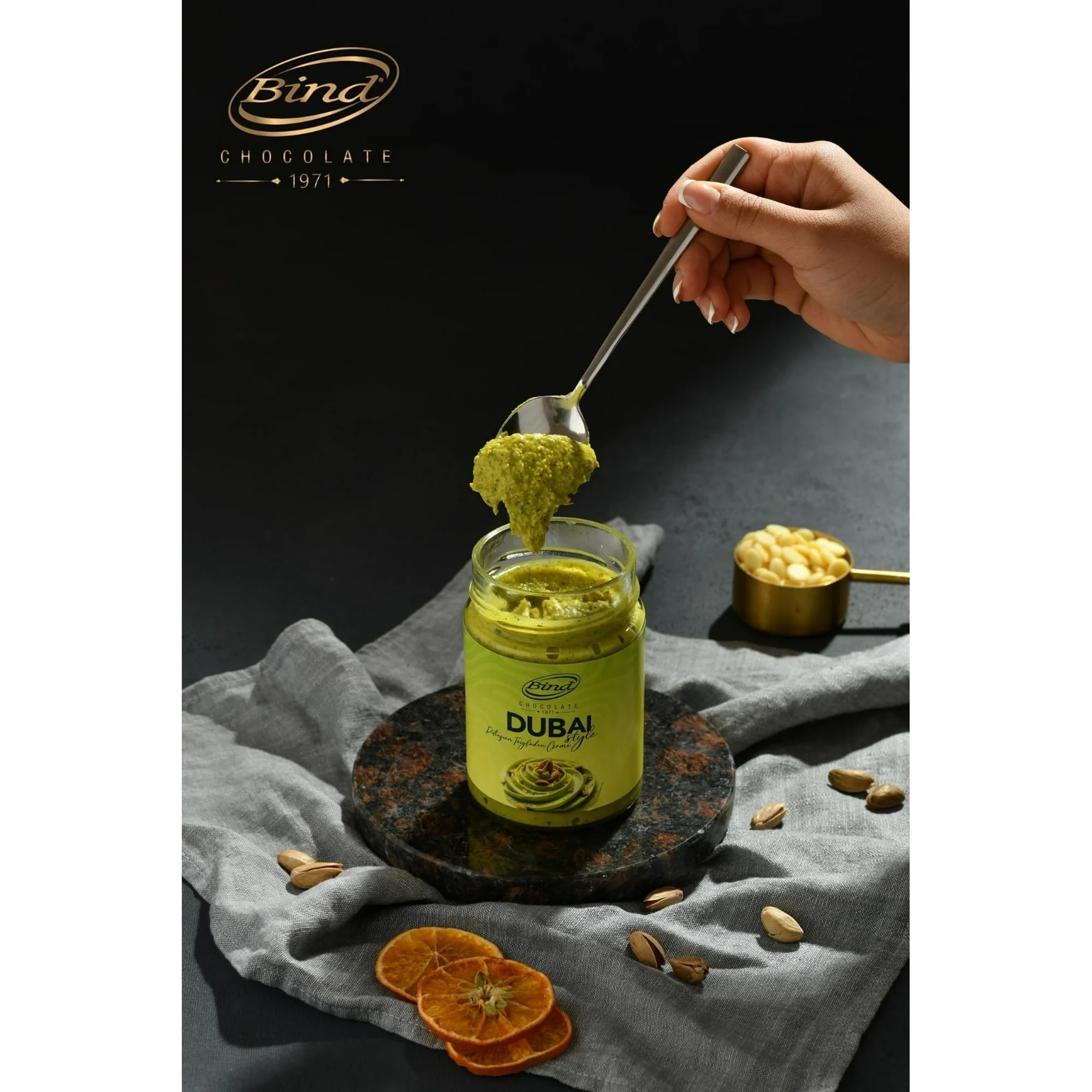 Indulge in the rich, creamy goodness of BIND Dubai Chocolate Pistachio Cream. Made with 25% premium pistachios, this versatile spread offers a delicious balance of nutty flavour and crunchy texture with the addition of authentic Turkish kadayif. Perfect as a filling for decadent desserts and chocolates, this shelf-stable product is a must-have for those looking for a unique and flavourful culinary experience. Take your creations to the next level with the irresistible taste of this pistachio-infused treat. Contains 25% real pistachios for a rich, nutty flavour