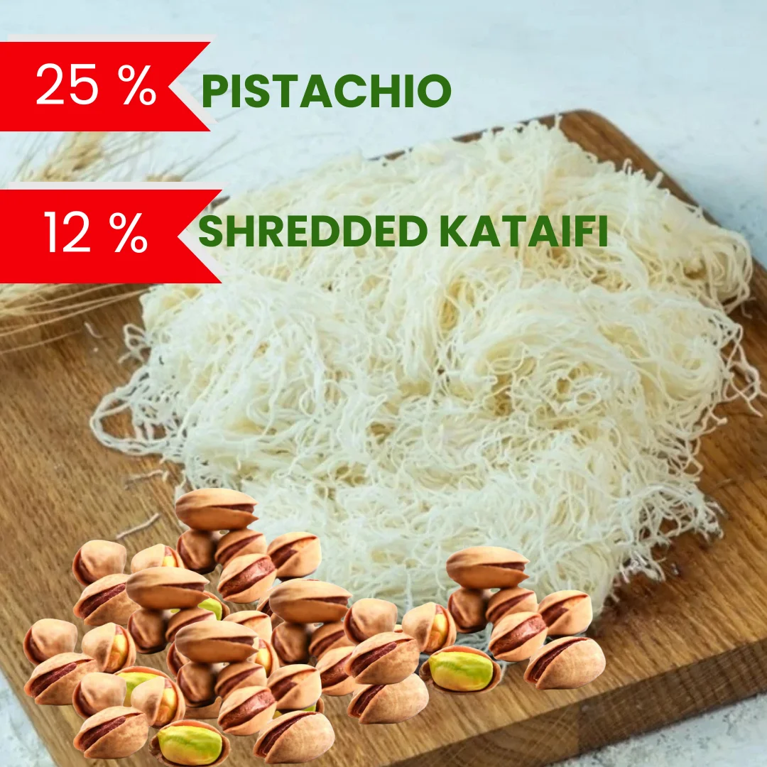 With a delicious pistachio filling and a crunchy premium kataifi topping