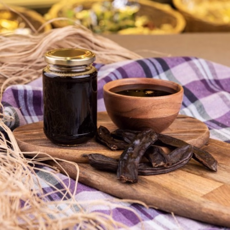 Johannesbroodmelasse neemt een belangrijke plaats in in de voeding voor volwassenen en kinderen, omdat het stimulerende eigenschappen heeft dankzij het rijke suikergehalte en omdat het grote hoeveelheden voedingsvezels, mineralen en fenolverbindingen bevat.