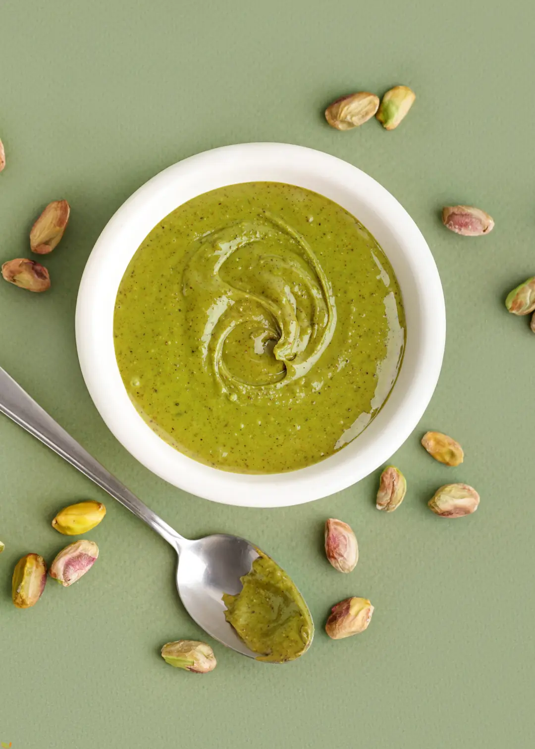 Dit romige dessert van pistachenoten verwent het gehemelte met zijn rijke smaak.