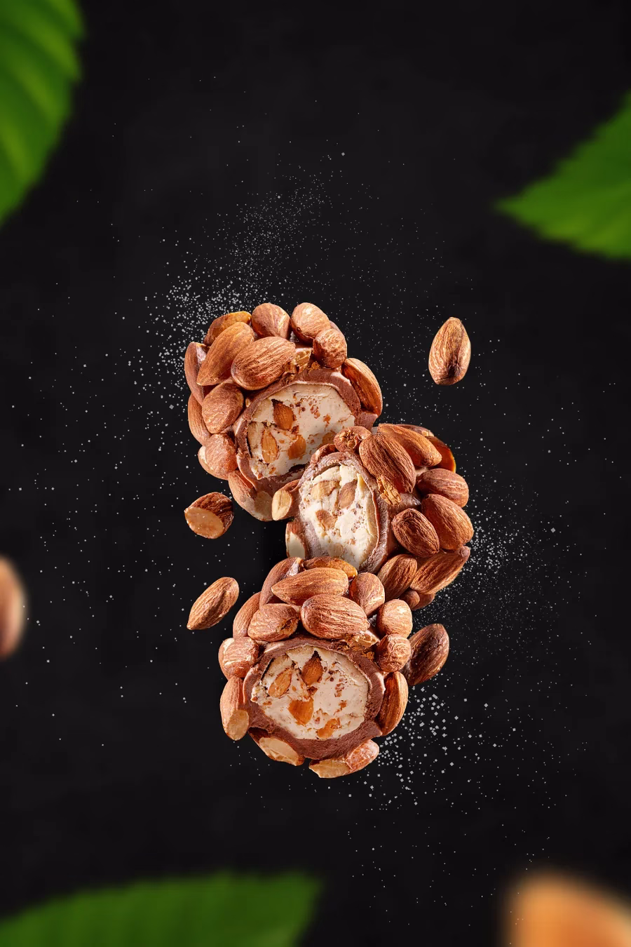 Ingrediënten: suiker, maïszetmeel, water, amandelen (14%), kadayif (tarwebloem, zout, water), hazelnootcrème [suiker, plantaardige olie (zonnebloem, palm), hazelnoten (10%)), weipoeder, magere melk Poeder, smaakstof (vanille), emulgator (sojalecithine), smaakstof (mango), zuurteregelaar (citroenzuur E330) worden toegevoegd.